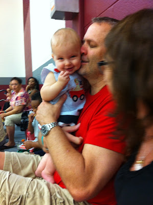 We spent the morning at home and after E's nap, just us two ran up to catch James' last game. That afternoon we hosted two neighbors for a cookout. One of the best parts of holidays with babies is dressing them up for the occasion! This outfit was out last summer at Cracker Barrel and I HAD TO HAVE IT! It's hard to tell but it has a yellow lab on the front. I remember they had a boy romper and a girl swing top and I originally saw it before we knew the gender. I just adore it and the matching hat! She will be wearing it again for the Fourth of July!