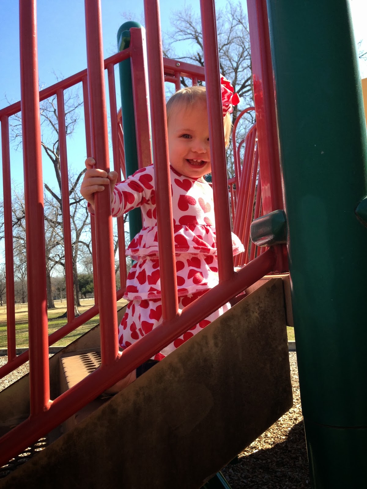I know I've said it a bunch, but I'm not good at just hanging around the house all day with Embry. Part of it is she gets into EVERYTHING and I feel bad saying no, no, no all day. I also like to get out and socialize with other moms for my sanity =) We went to our normal weekly play dates for Toddler Open Gym and also at the Galleria Playscape and managed to go to three different parks during the week.