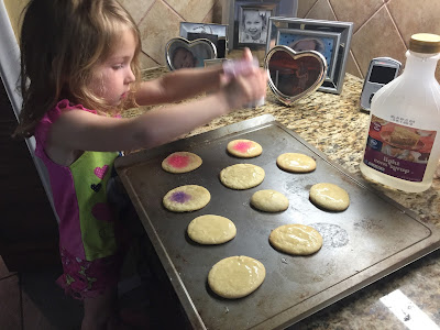 Back to her begging to bake a cake...she settled for making a mini batch of Easter egg cookies |